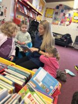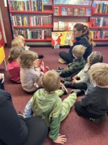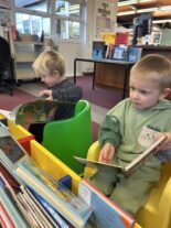 This morning the toddlers thoroughly enjoyed a trip to the library via the bus. We wrapped up warm and made our journey down to the bus stop where the children waited eagerly for the bus to arrive. On the journey we sang lots of nursery rhymes including ‘the wheels on the bus’. Once arriving at the library we took off our coats and all chose a book. It was lovely to as each child chose a different themed book for example, a digger book, Peppa pig, dear zoo and superworm. Before we set back off home we sat in a group and read a Christmas story. The children were excited to talk about Father Christmas and so were we. We are already looking forward to our next adventure into the community.